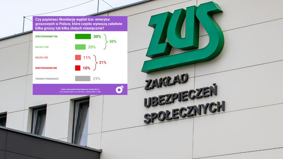 50 proc. badanych popiera likwidację tzw. emerytur groszowych w Polsce, które często wynoszą kilka groszy. Najniższe świadczenie wypłacane w Polsce to zaledwie... 2 grosze. Jak wynika z danych ZUS, na koniec grudnia 2025 r. emeryturę w wysokości nieprzekraczającej 50 zł otrzymywało 5,5 tys. osób.