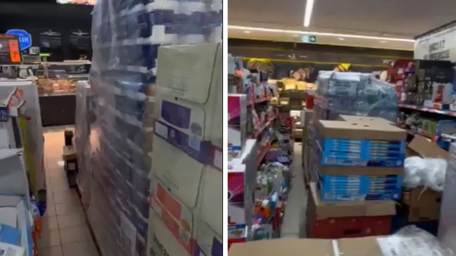 Trudno wyobrazić sobie manewrowanie koszykiem czy też sięganie po poszczególne produkty w takich warunkach, ale komfort zakupów to sprawa drugorzędna. Jak widzimy na nagraniu, dyskont przypomina labirynt, z którego trudno byłoby się wydostać na wypadek pożaru.