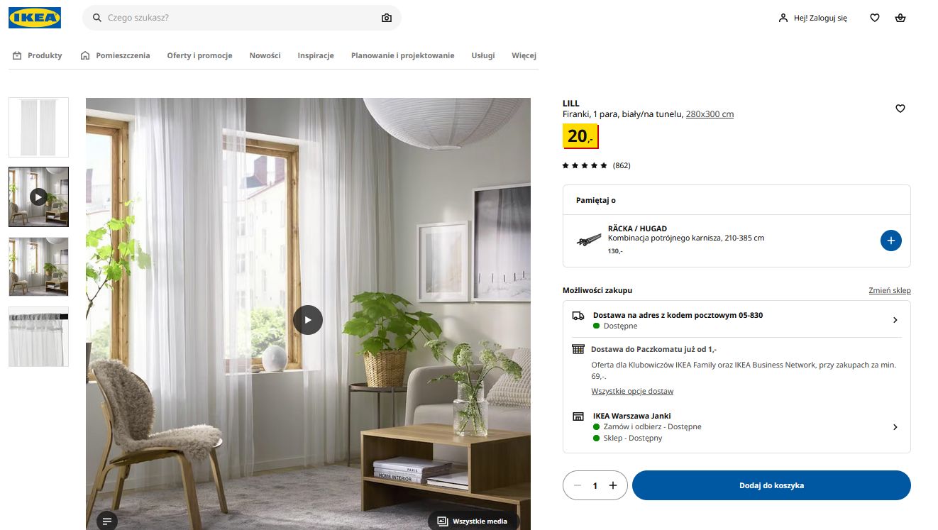 Firany można kupić w sklepach stacjonarnych IKEA lub zamówić na stronie sklepu.